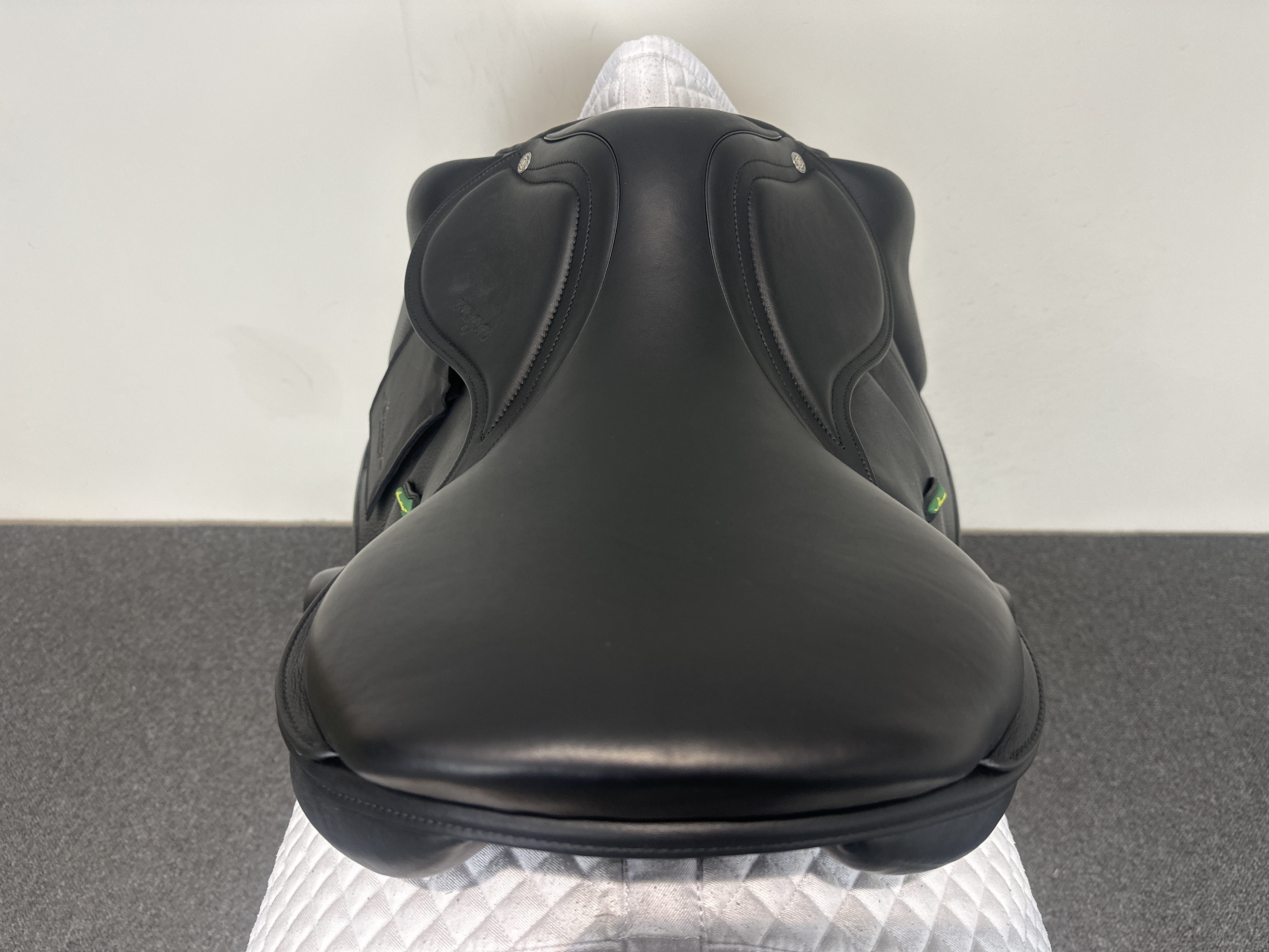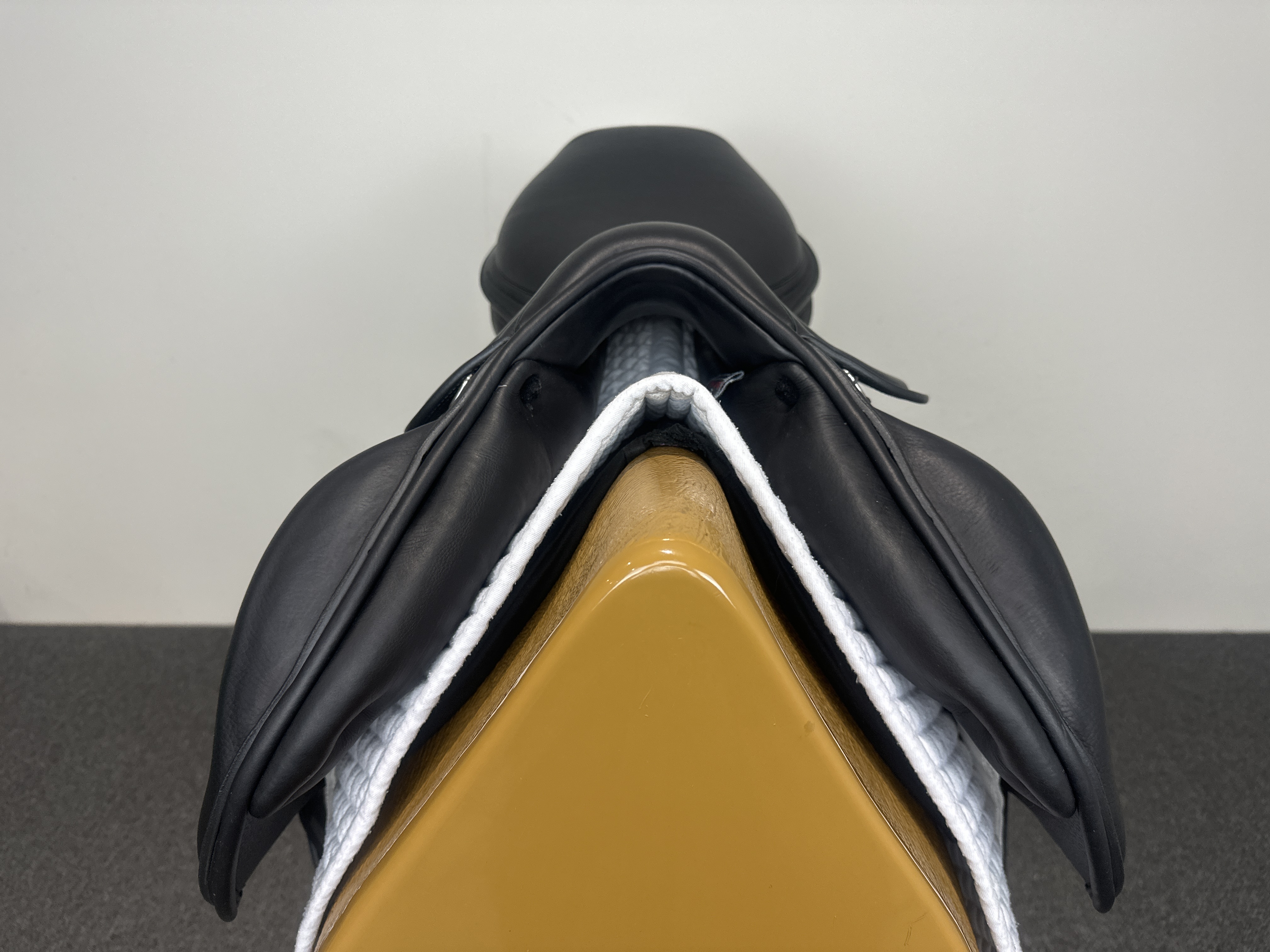 - Calfskin padded seat and knee rolls for rider comfort