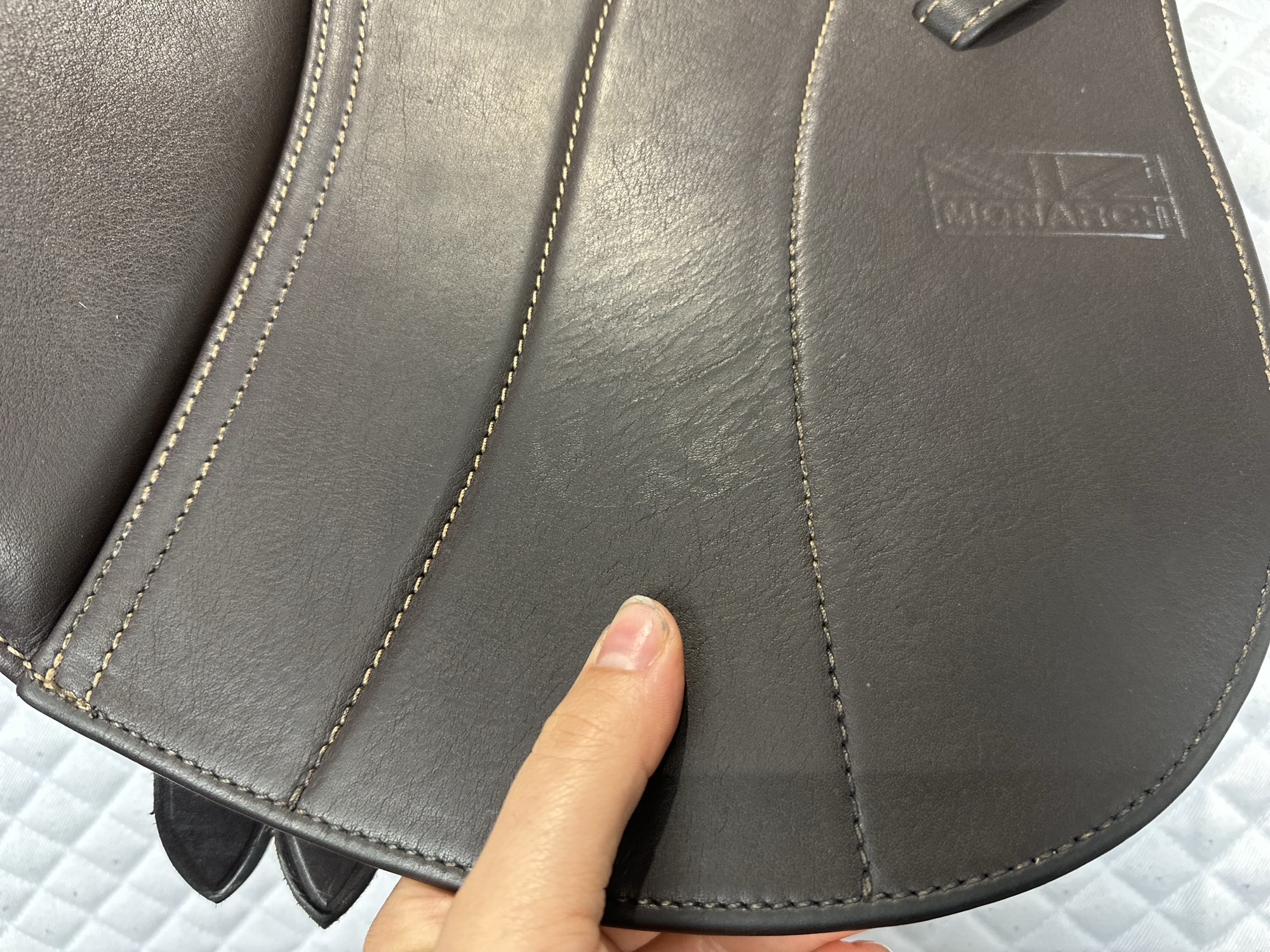 Friction rub areas, such as where the stirrup leathers rub on the Flap.