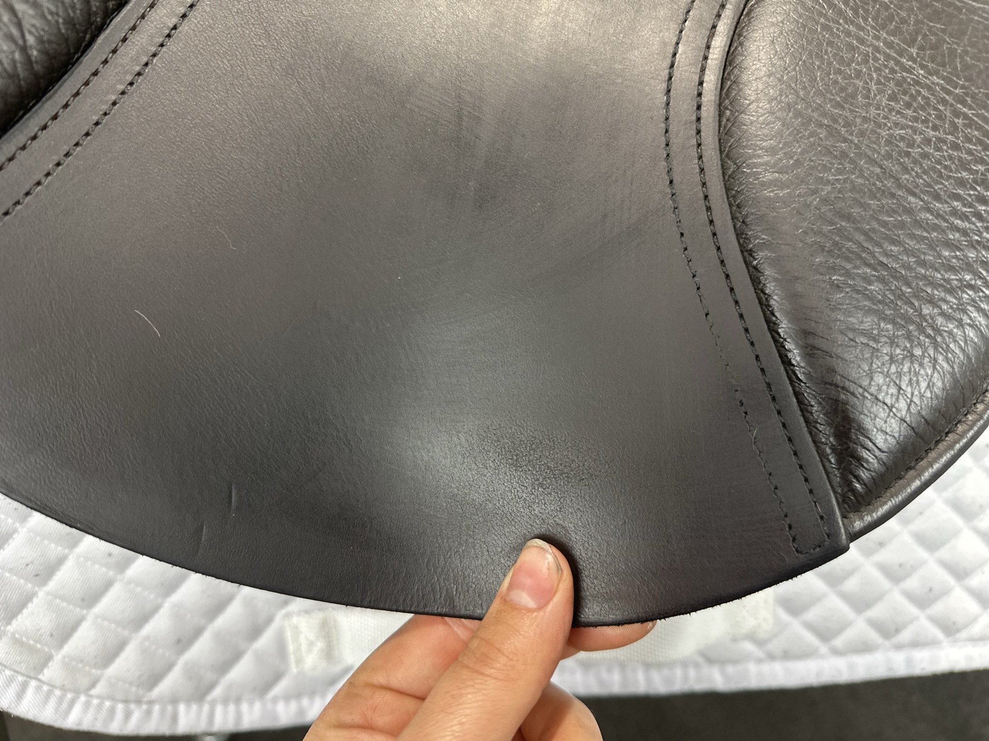 - Ghosted stitching on knee rolls for rider comfort
