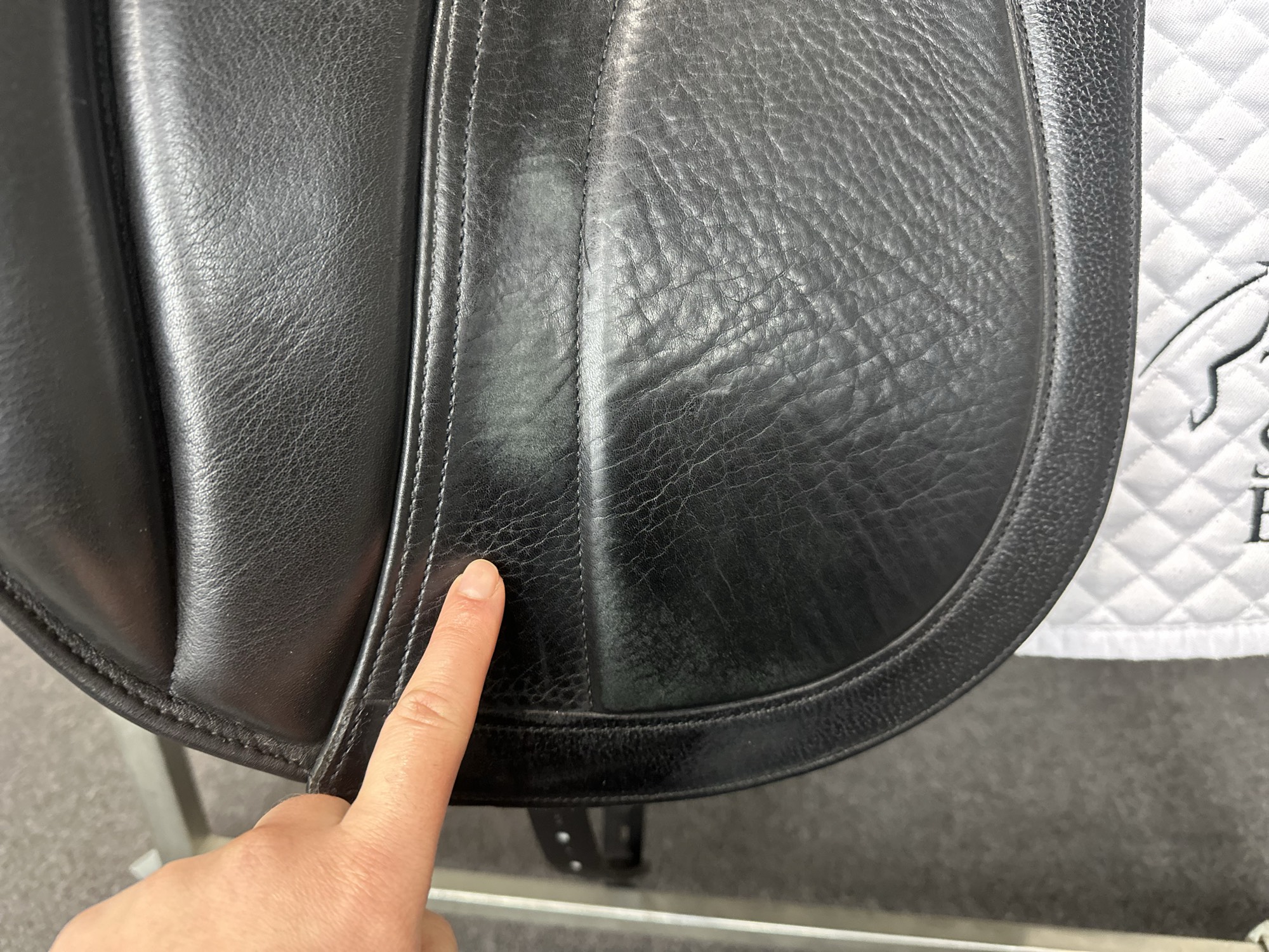 Friction rub areas, such as where the stirrup leathers rub on the Flap.
