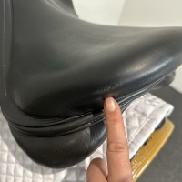 - Forward cut shape so rider can have shorter stirrups to be able to get up and out the saddle when galloping and jumping