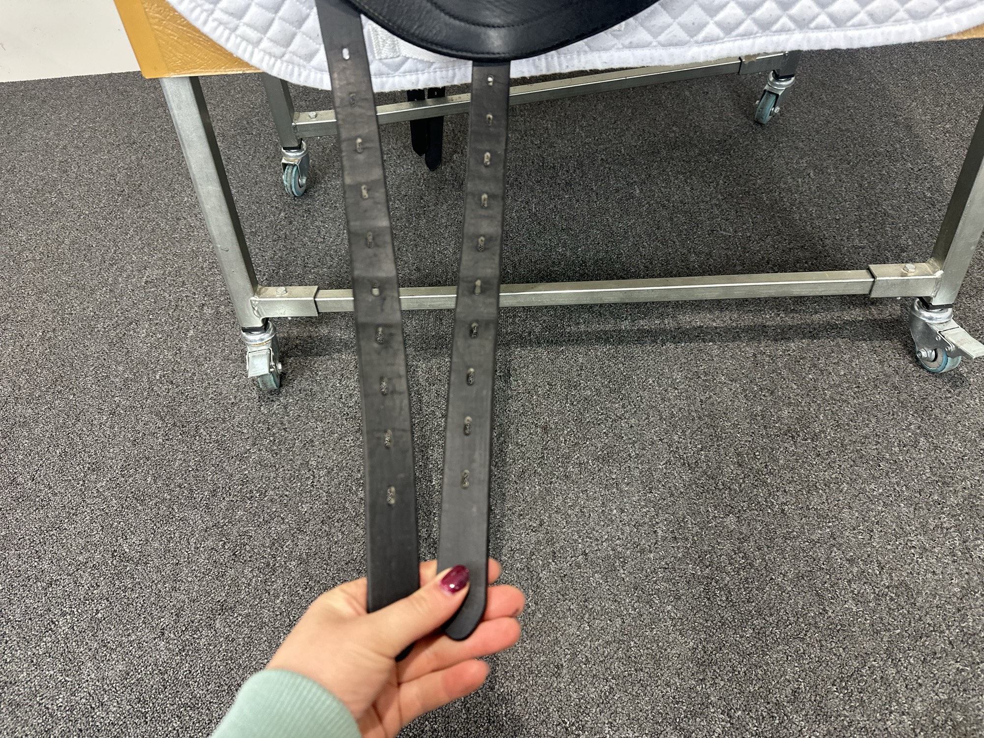 A very difficult pony to saddle but a lot of help from the team and no hassle over changing various