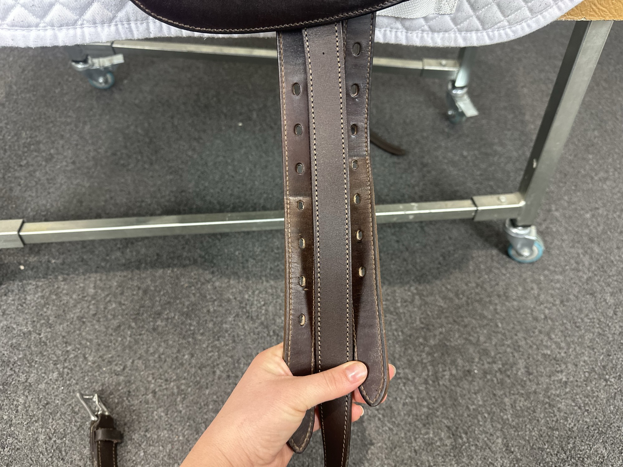 A very difficult pony to saddle but a lot of help from the team and no hassle over changing various