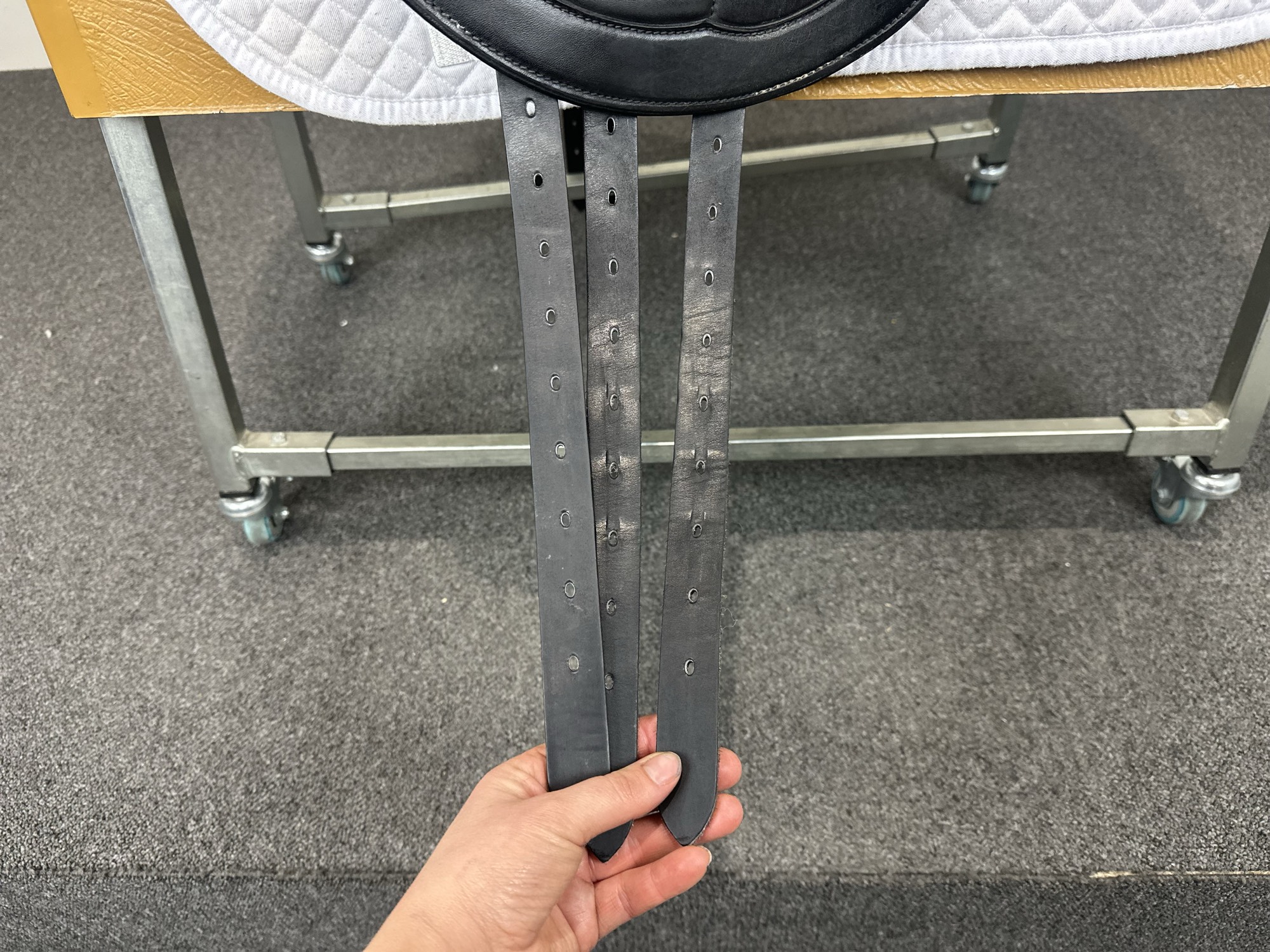 Keep your saddle at room temperature, away from direct heat or damp conditions. Always store it on a saddle rack or stand to preserve its shape.