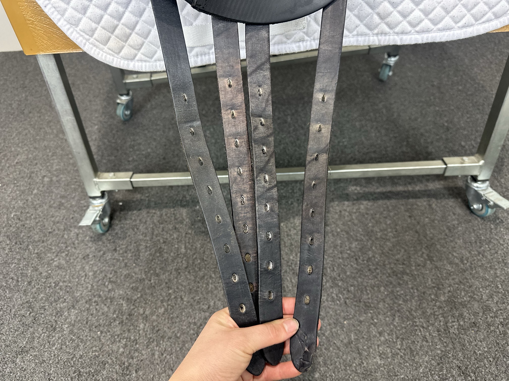A very difficult pony to saddle but a lot of help from the team and no hassle over changing various