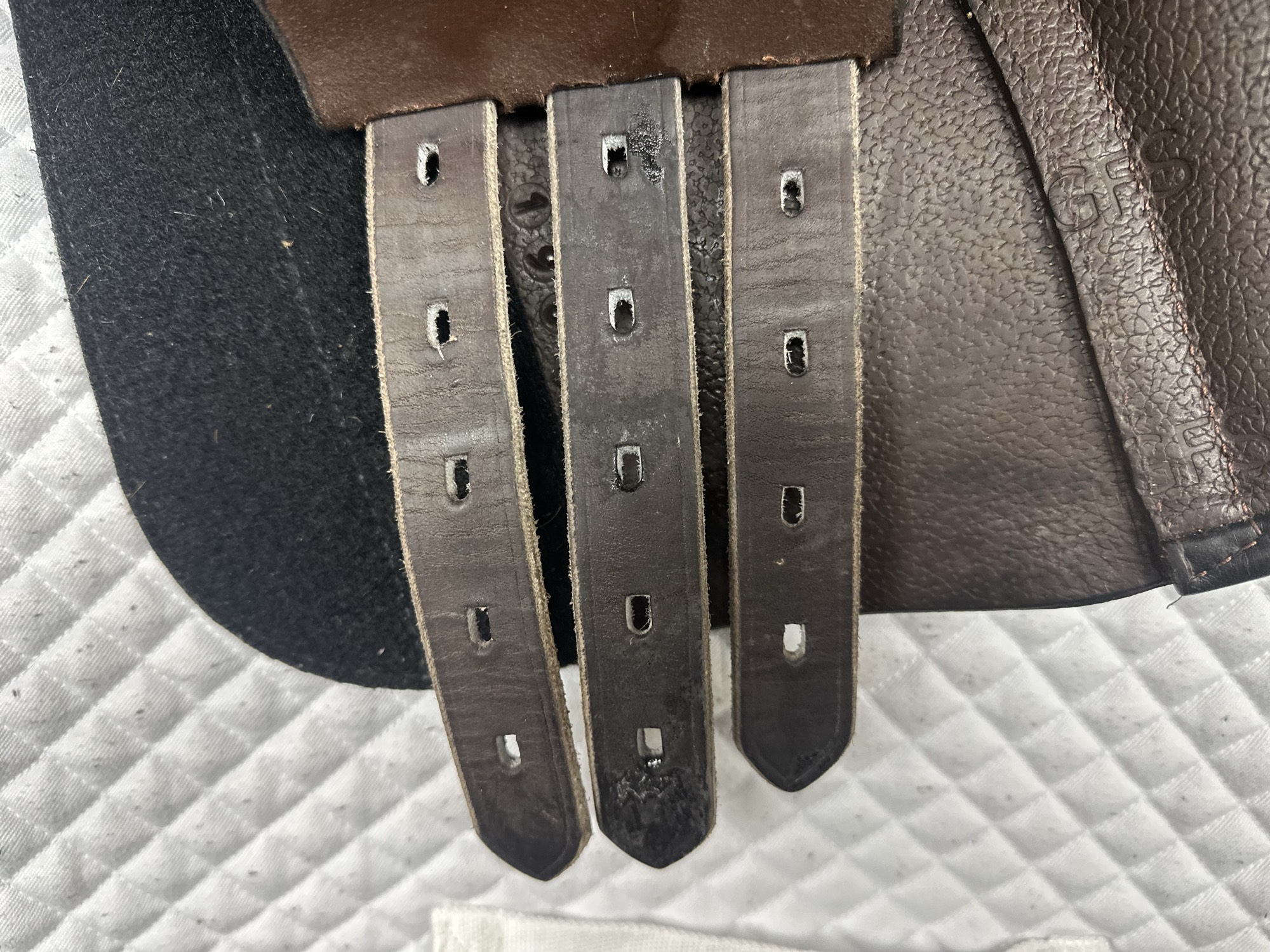 Friction rub areas, such as where the stirrup leathers rub on the Flap.