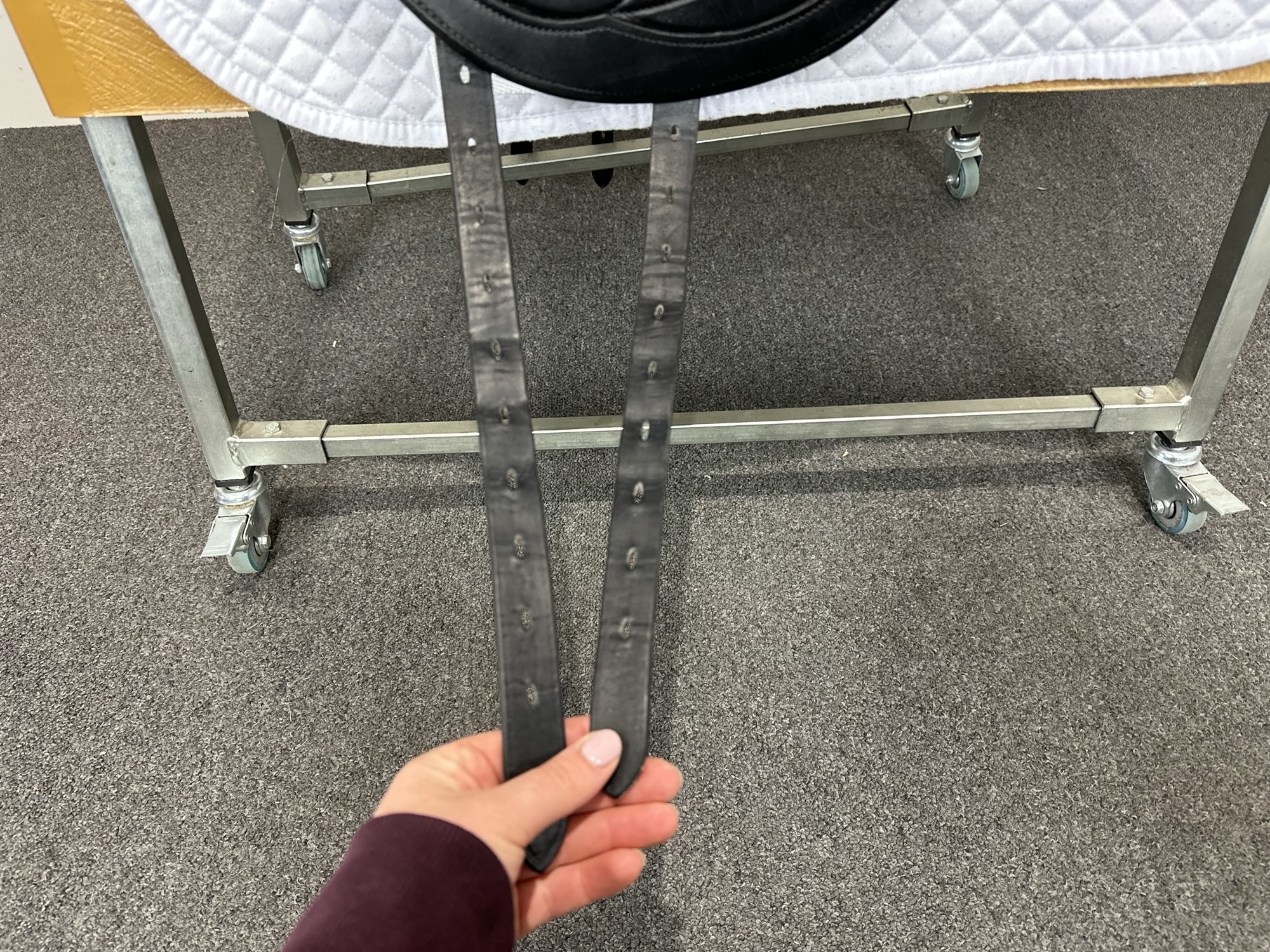 Keep your saddle at room temperature, away from direct heat or damp conditions. Always store it on a saddle rack or stand to preserve its shape.
