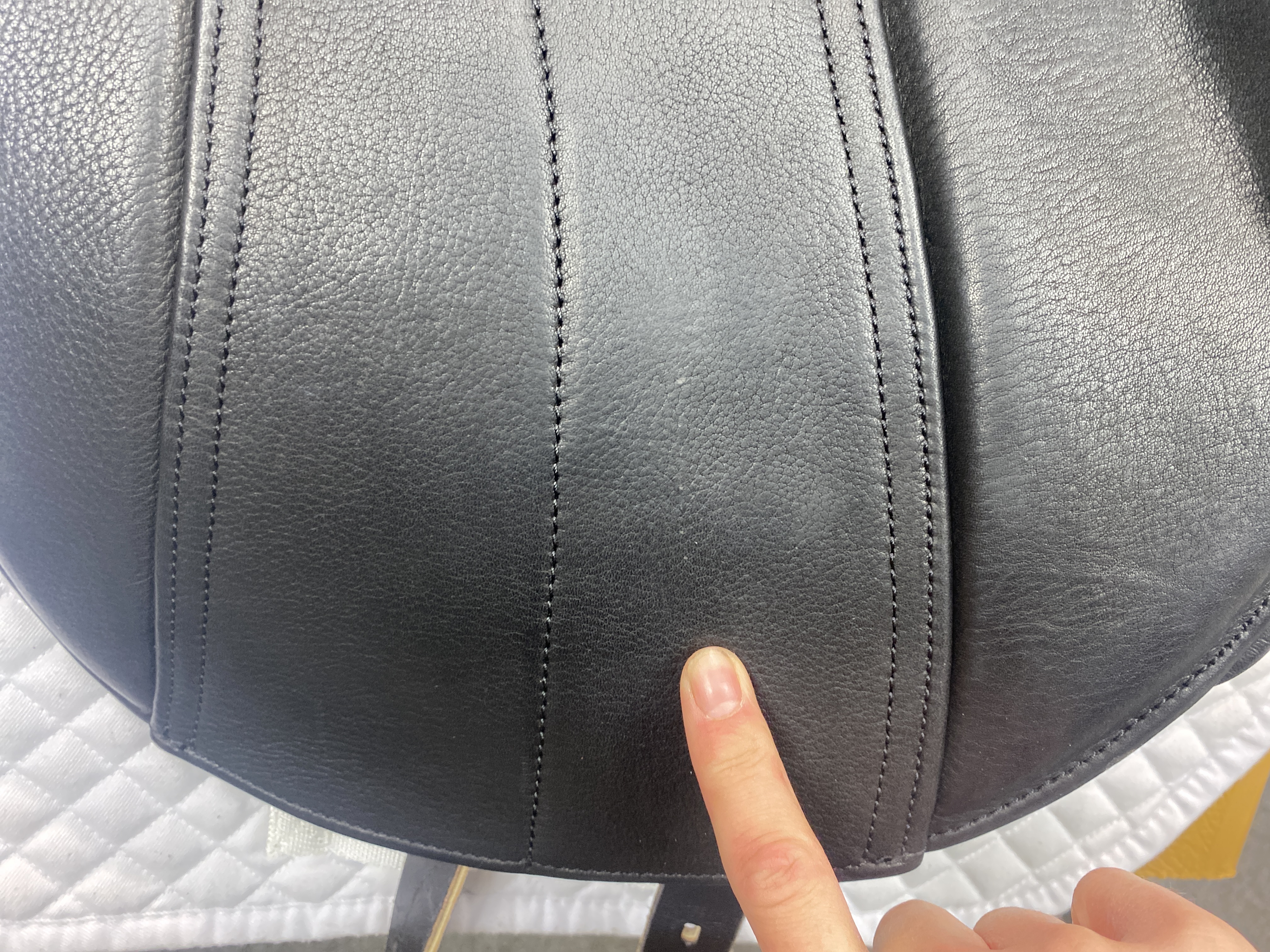 It is normal, especially if the surface of the leather is ‘damp‘, to experience some colour loss onto your breeches.