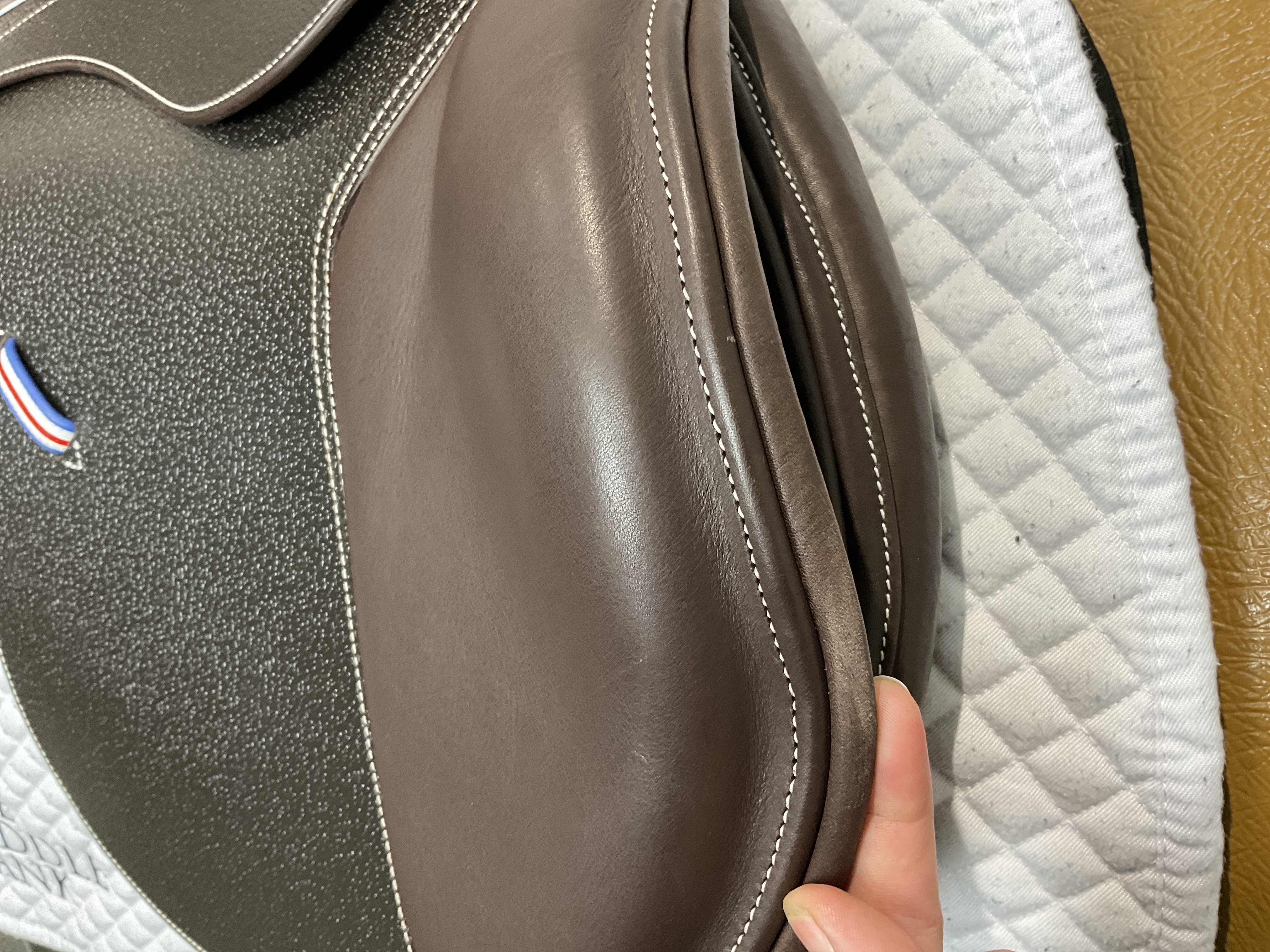 - Large calfskin padded knee roll ensure stability when jumping