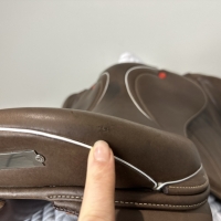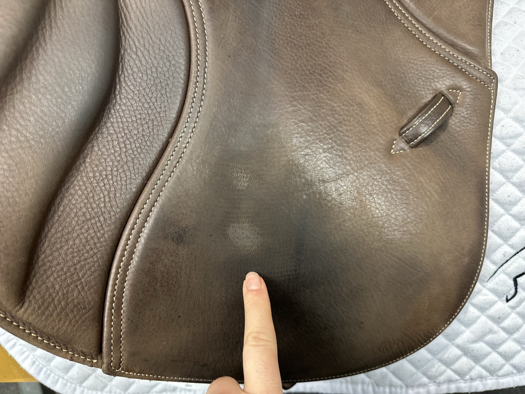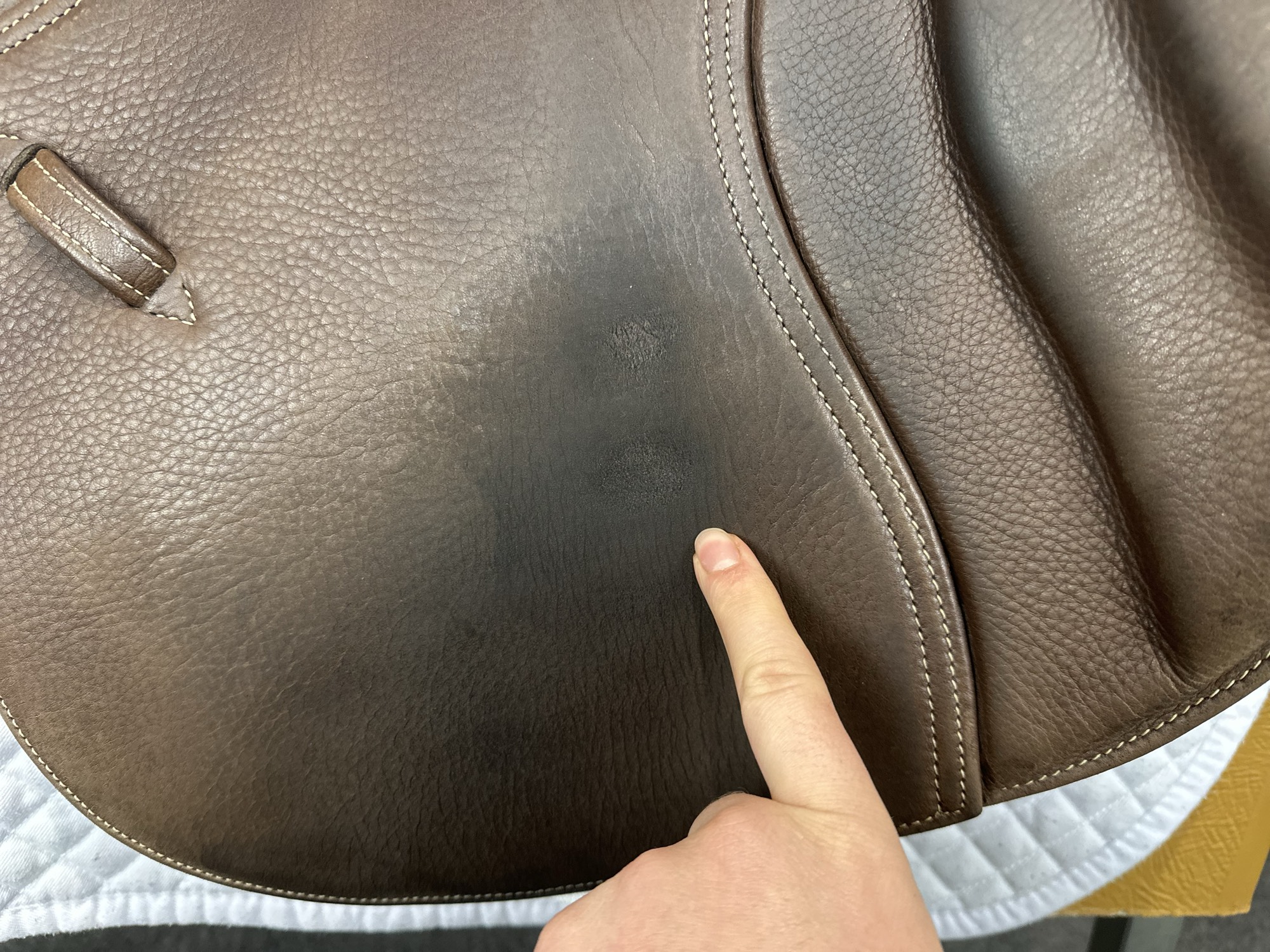 - The leather flap also features a padded section at the skirt to stop creasing and aid comfort