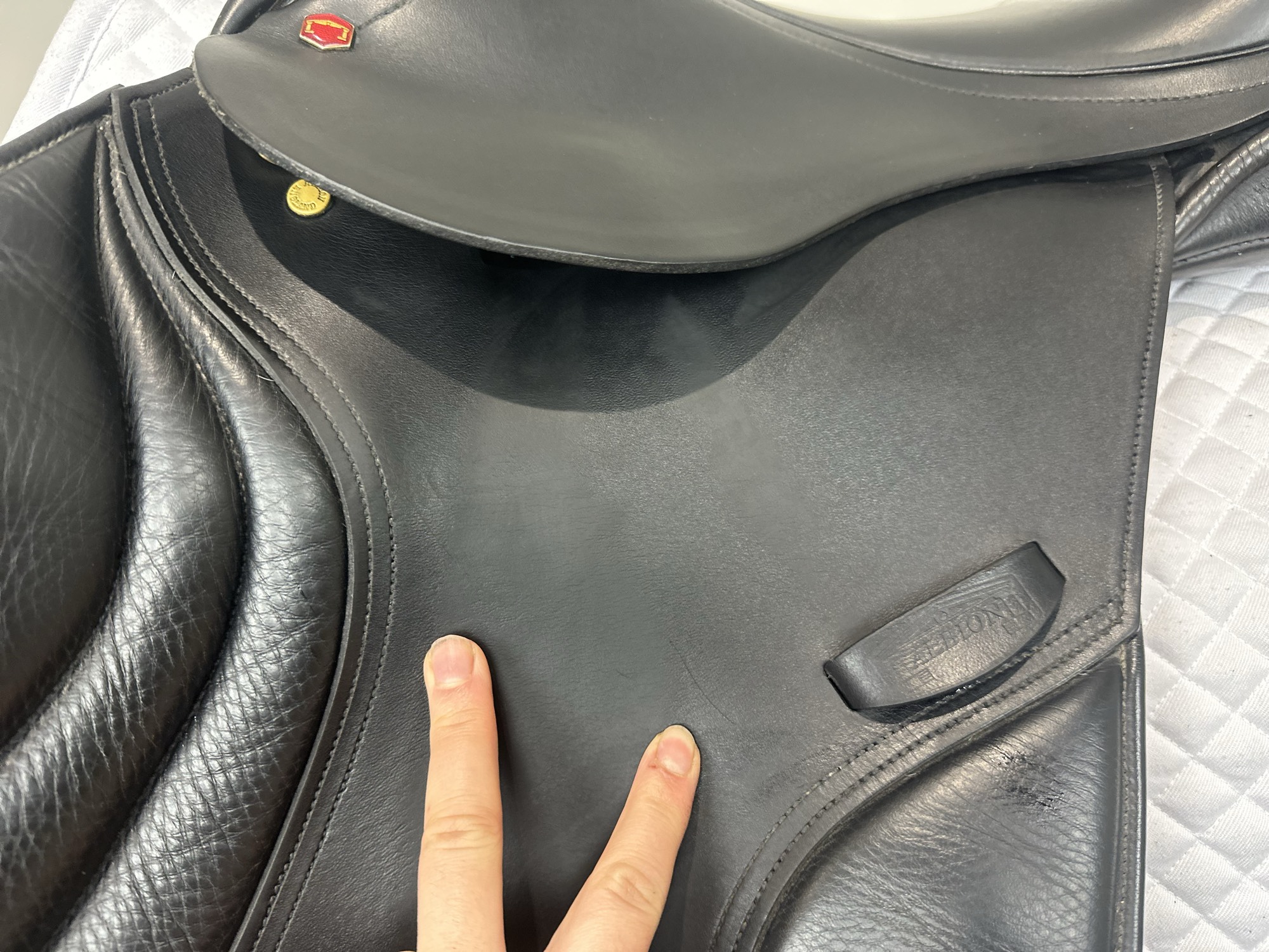 - Ghosted stitching on knee rolls for rider comfort