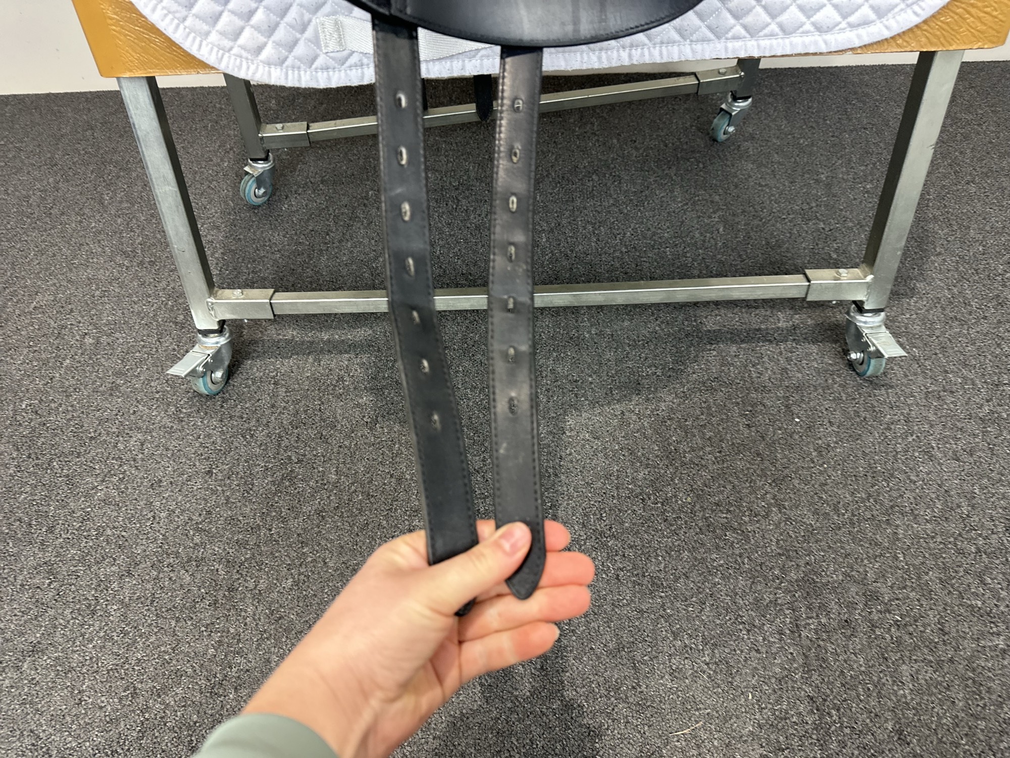 A very difficult pony to saddle but a lot of help from the team and no hassle over changing various