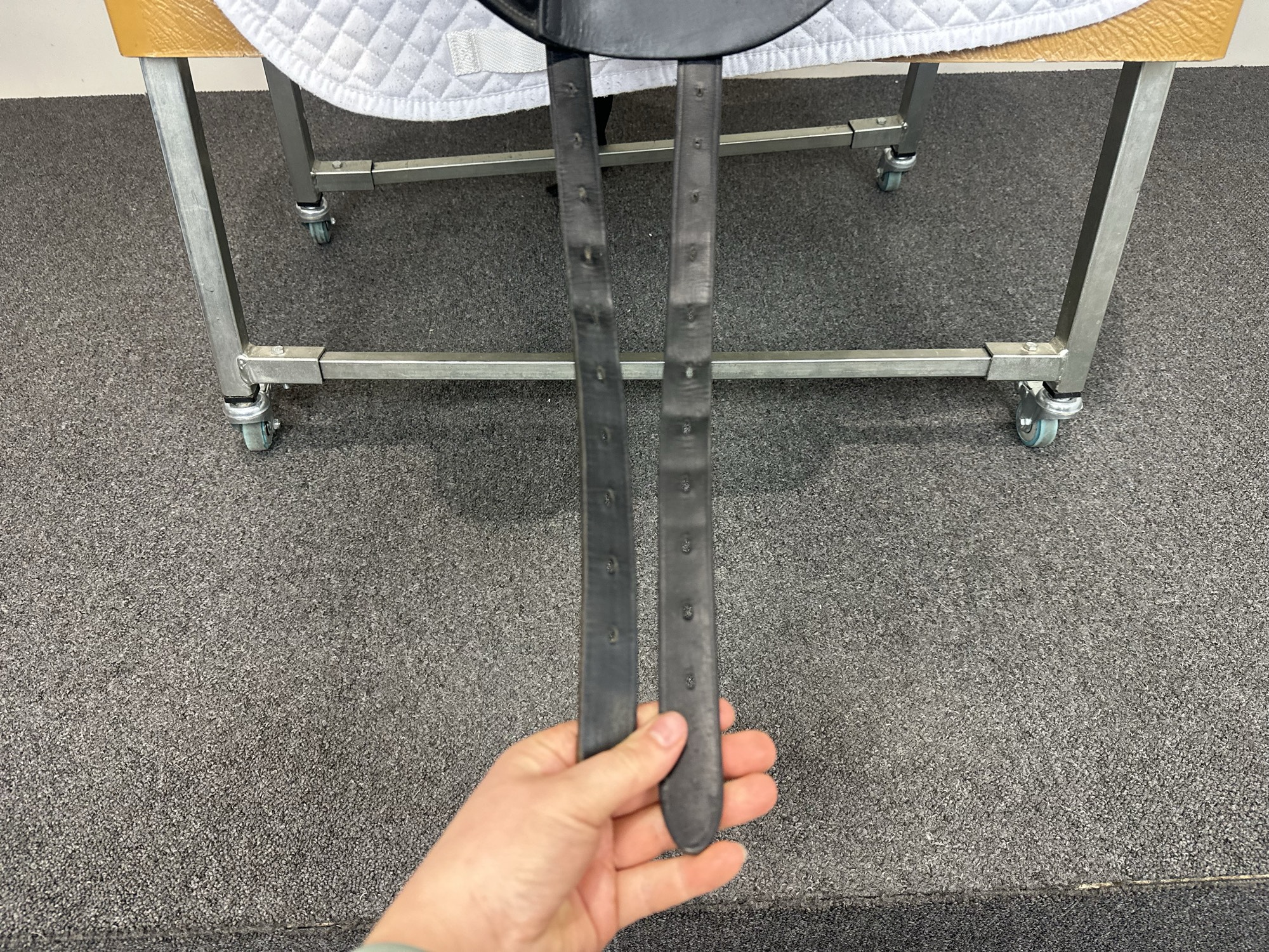 Keep your saddle at room temperature, away from direct heat or damp conditions. Always store it on a saddle rack or stand to preserve its shape.