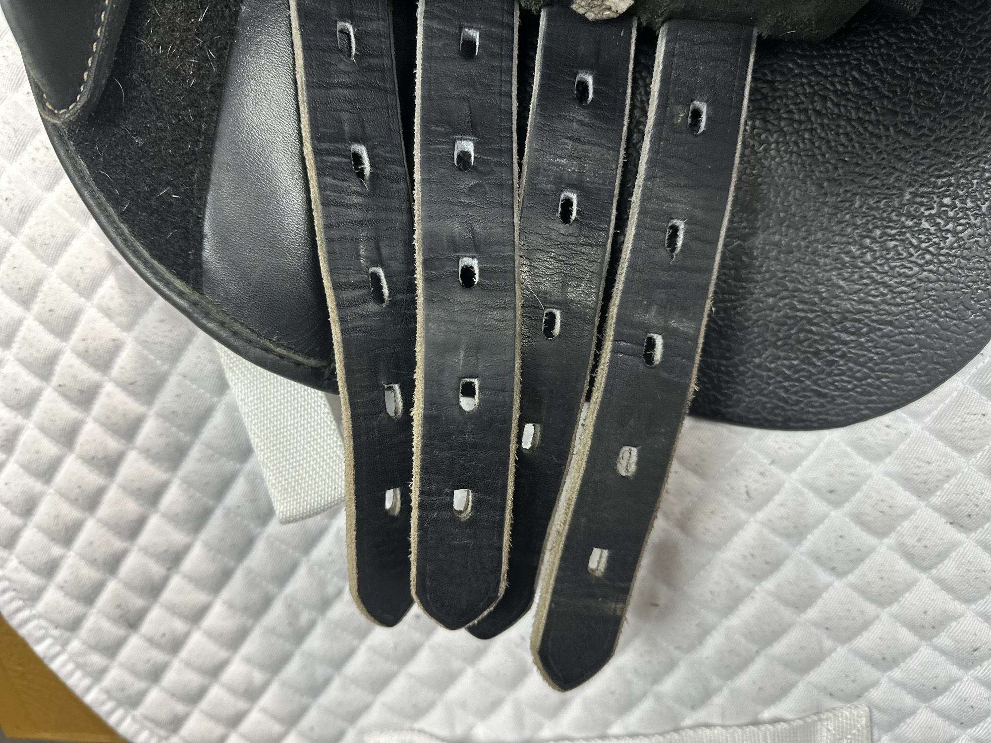 Friction rub areas, such as where the stirrup leathers rub on the Flap.