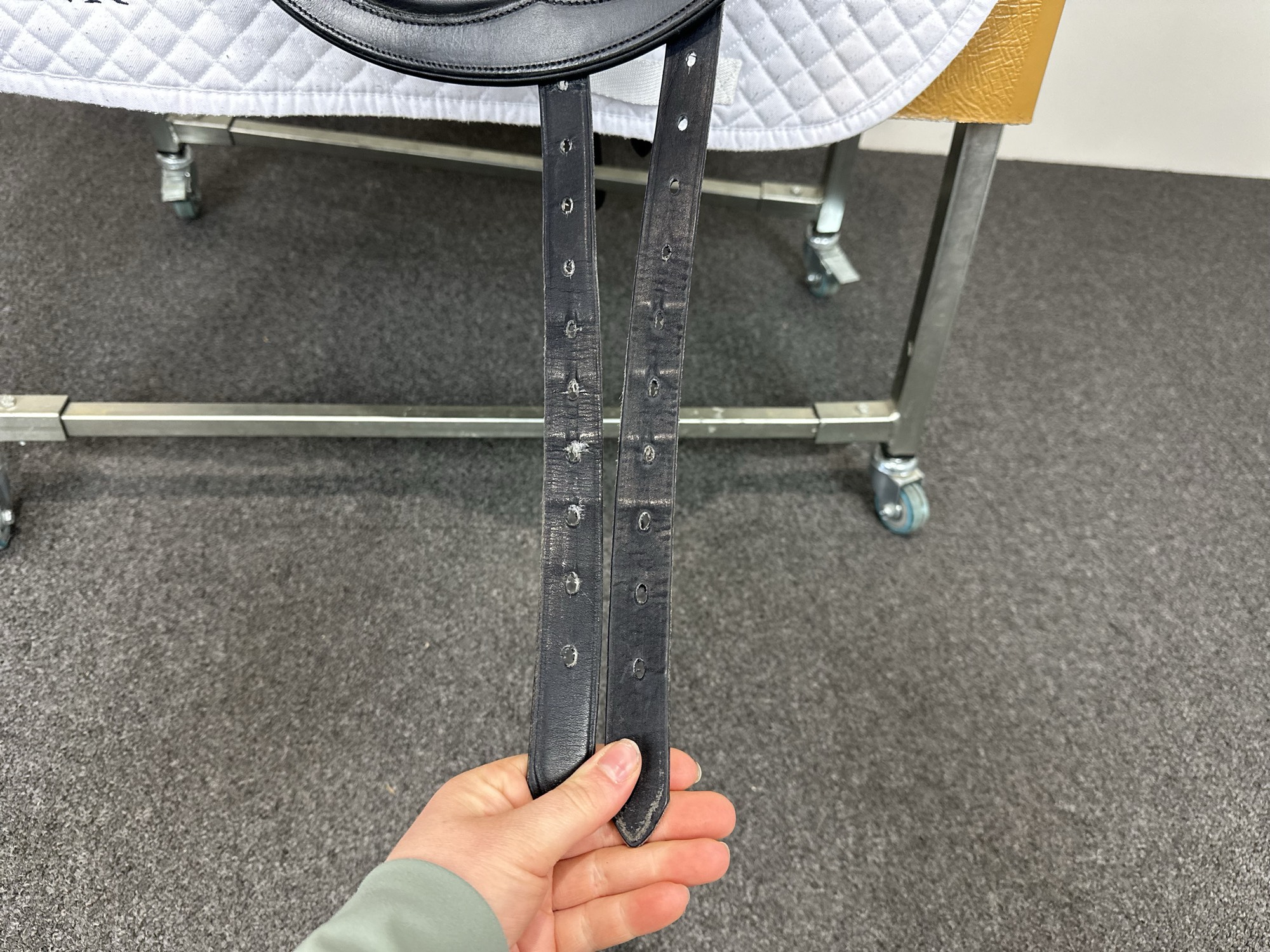 Keep your saddle at room temperature, away from direct heat or damp conditions. Always store it on a saddle rack or stand to preserve its shape.