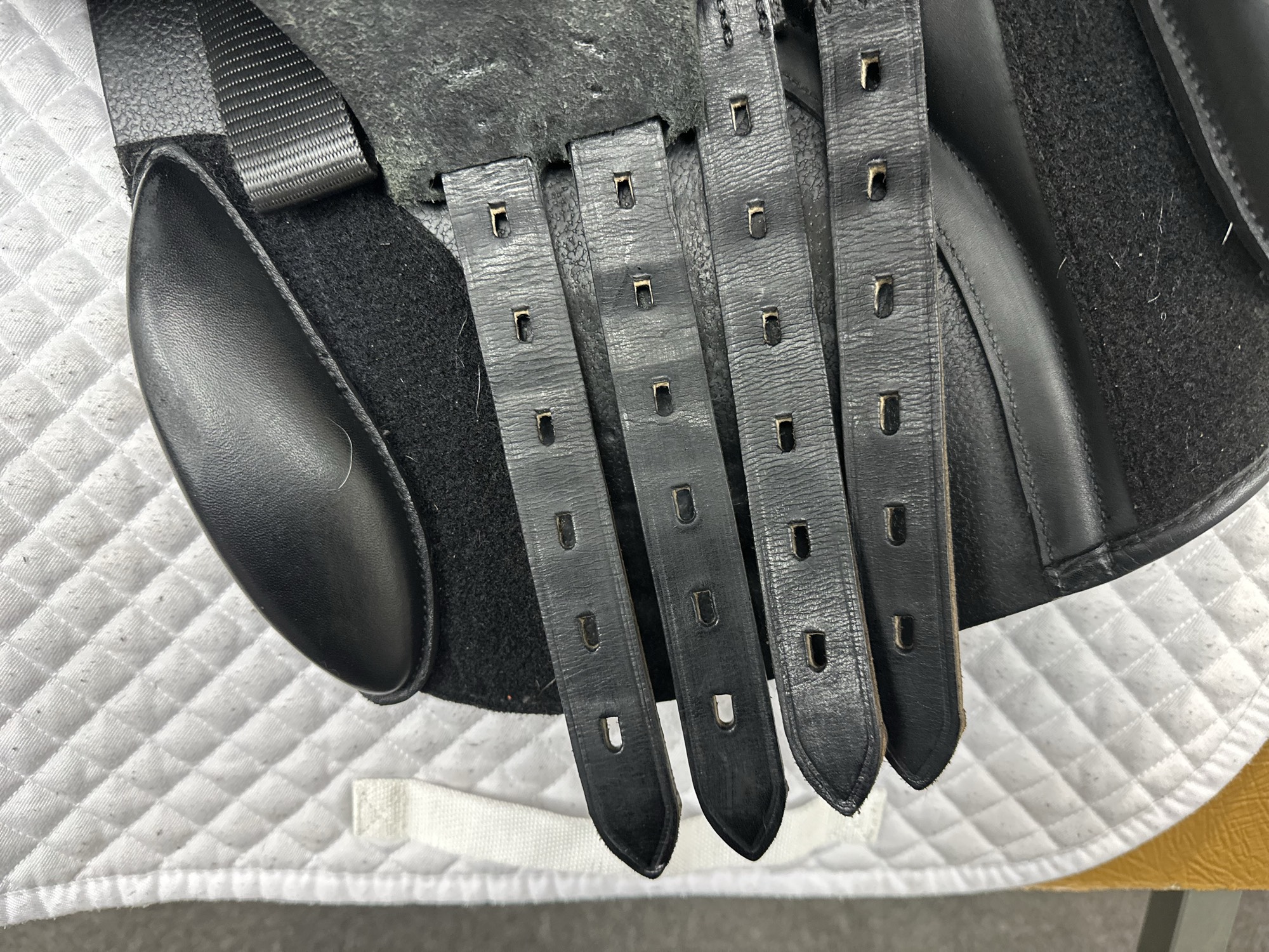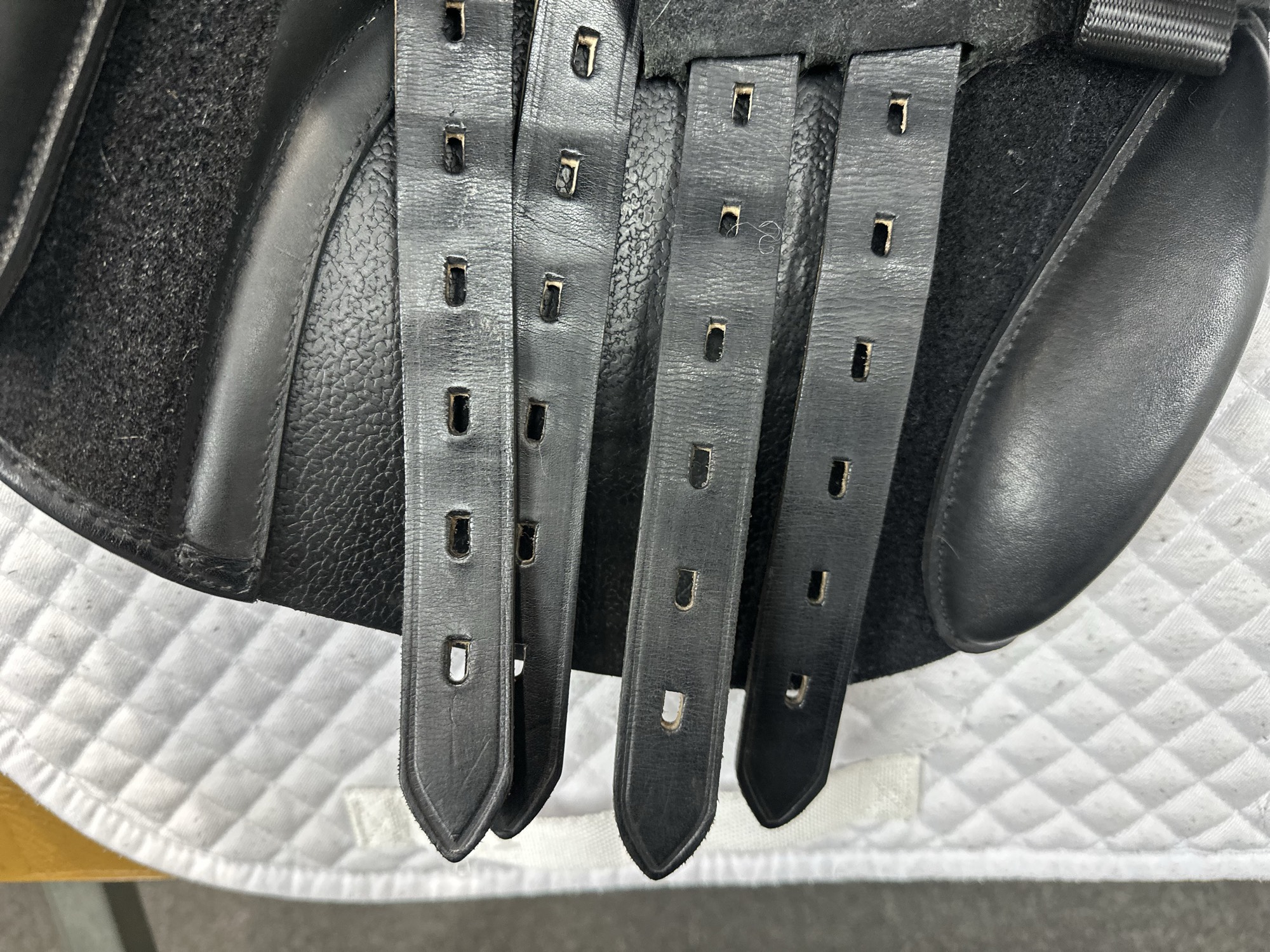 Friction rub areas, such as where the stirrup leathers rub on the Flap.