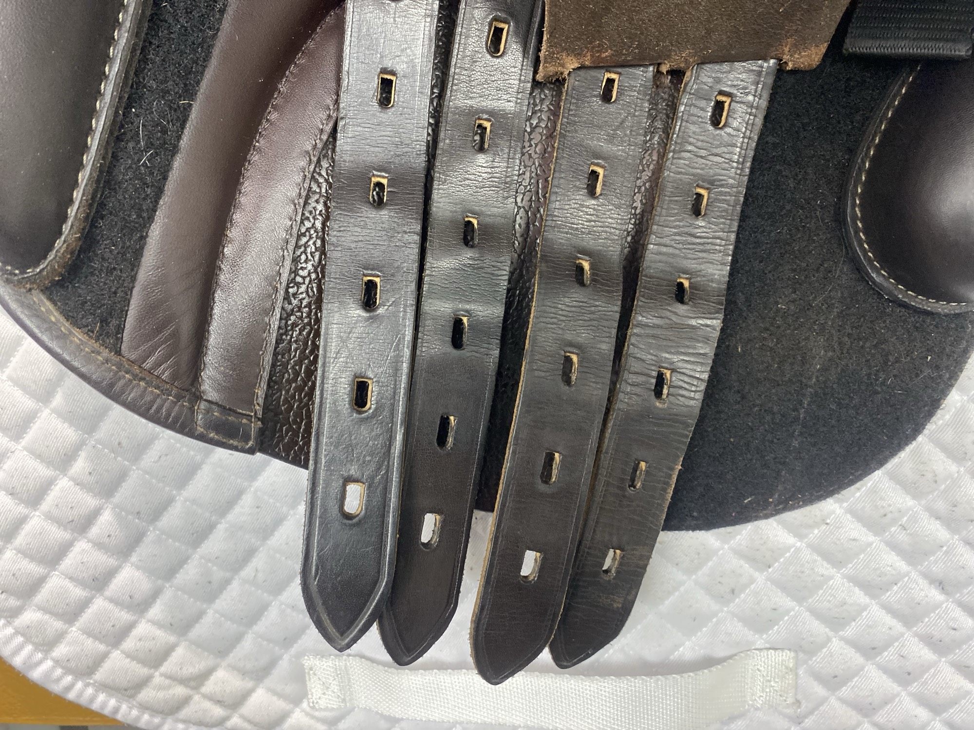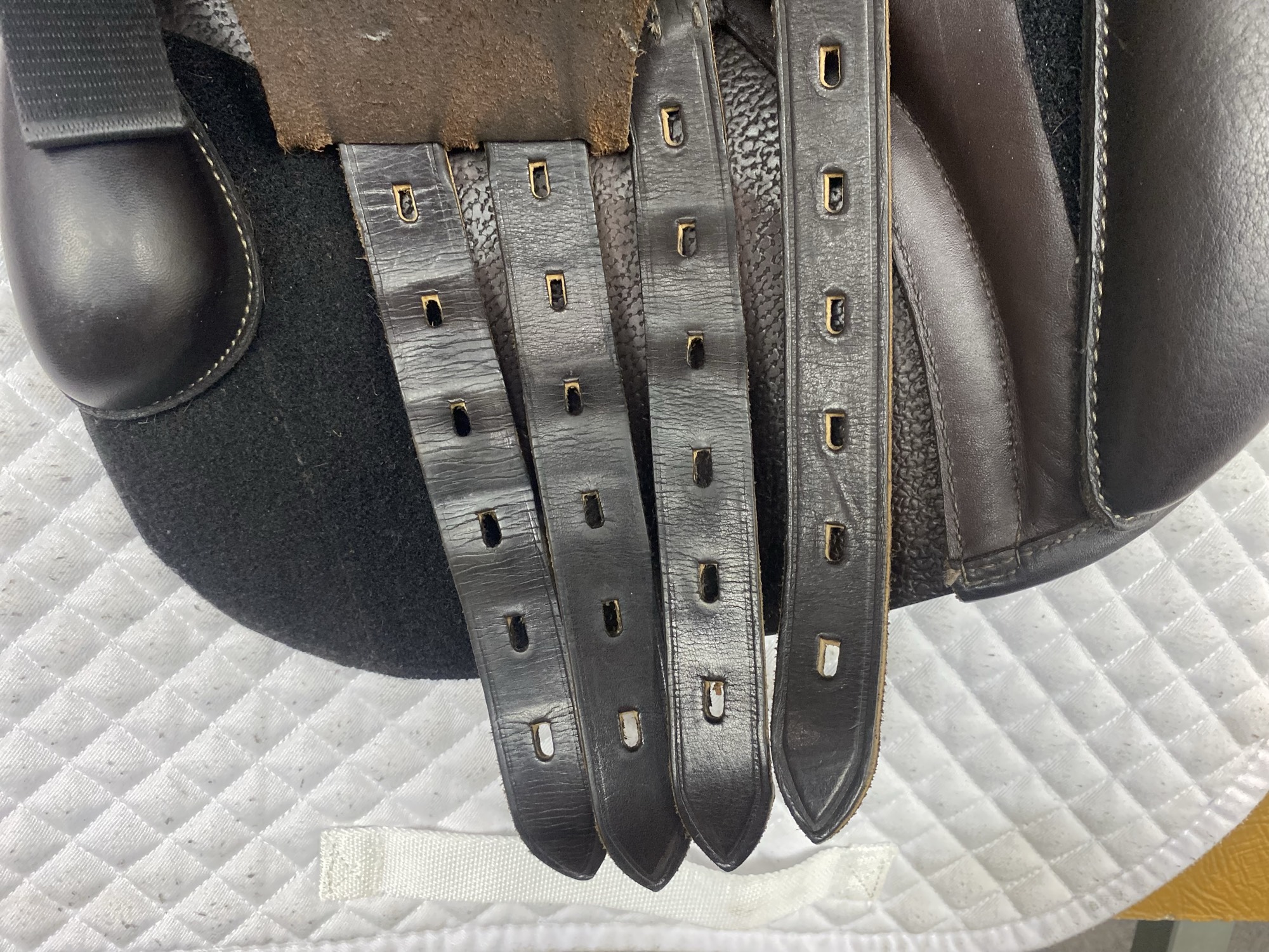Friction rub areas, such as where the stirrup leathers rub on the Flap.