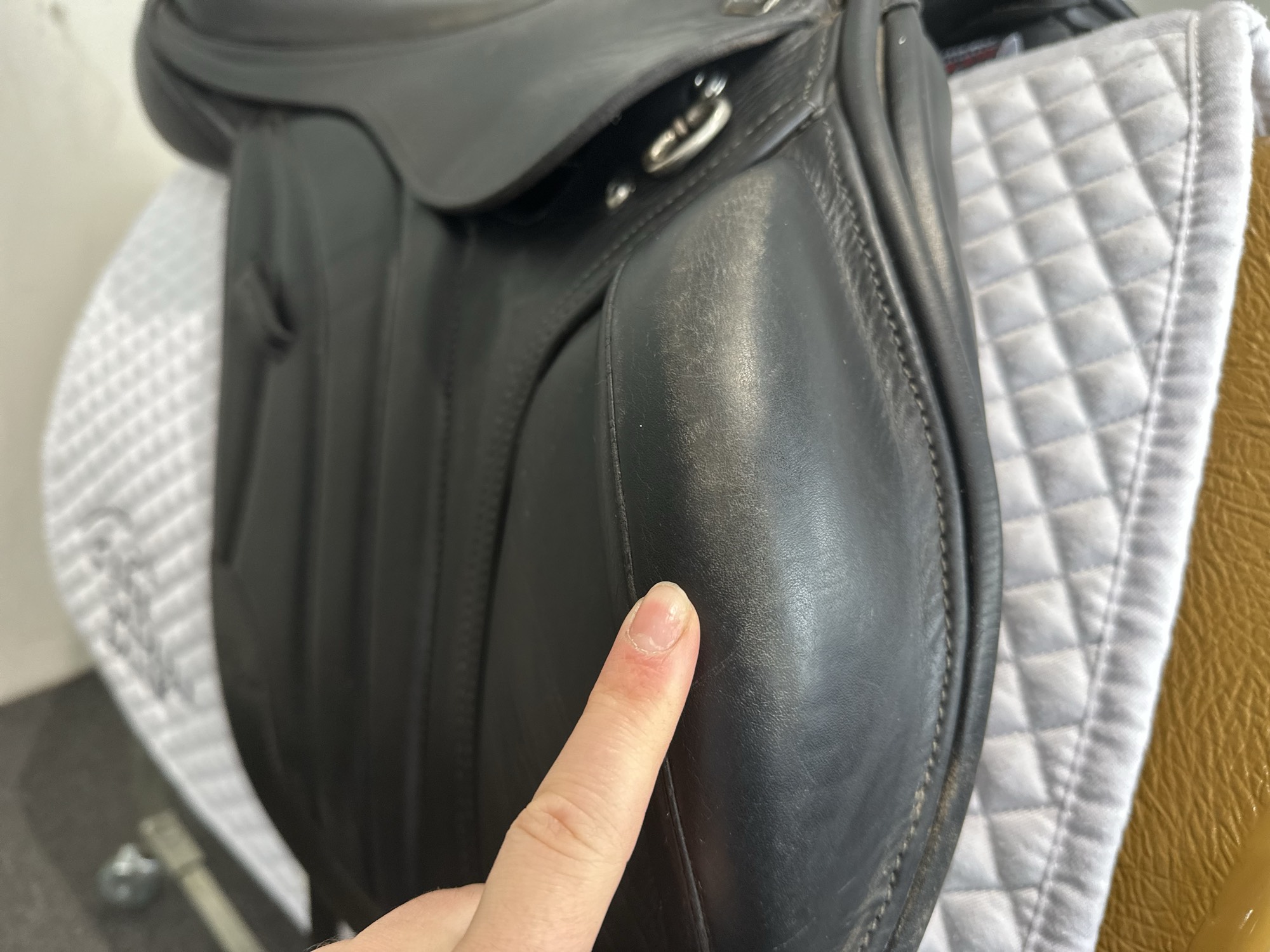 Friction rub areas, such as where the stirrup leathers rub on the Flap.