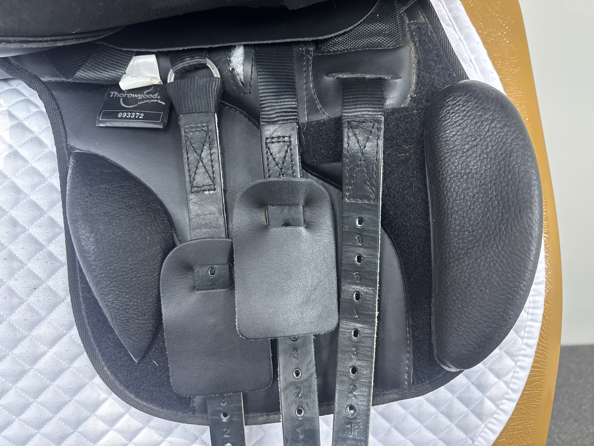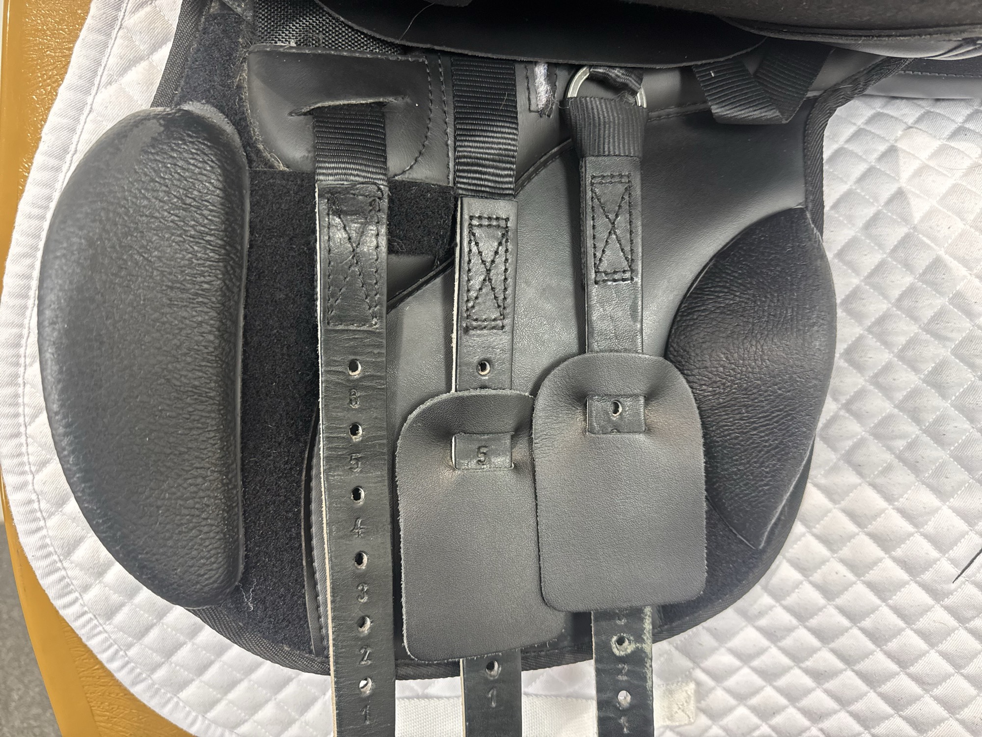 - Velcro knee and calf blocks which can be positioned to suit the rider