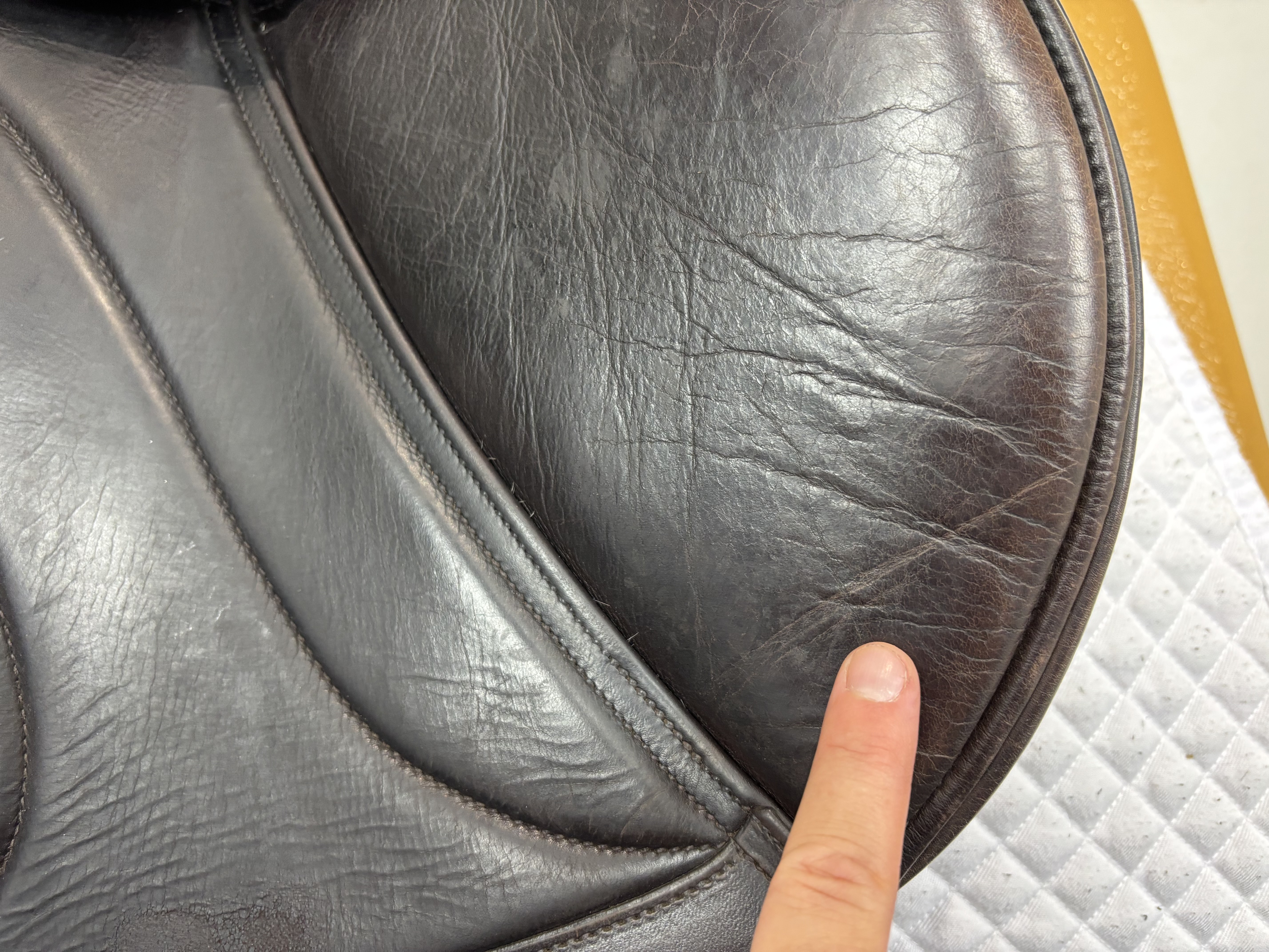 Keep your saddle at room temperature, away from direct heat or damp conditions. Always store it on a saddle rack or stand to preserve its shape.